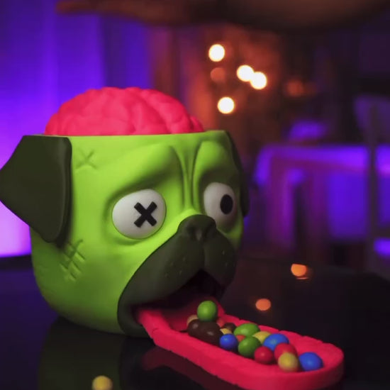 Why settle for a boring candy bowl when you can have a pug zombie that spits candy from its tongue? Perfect for Halloween fun, horror fans, and candy lovers alike.